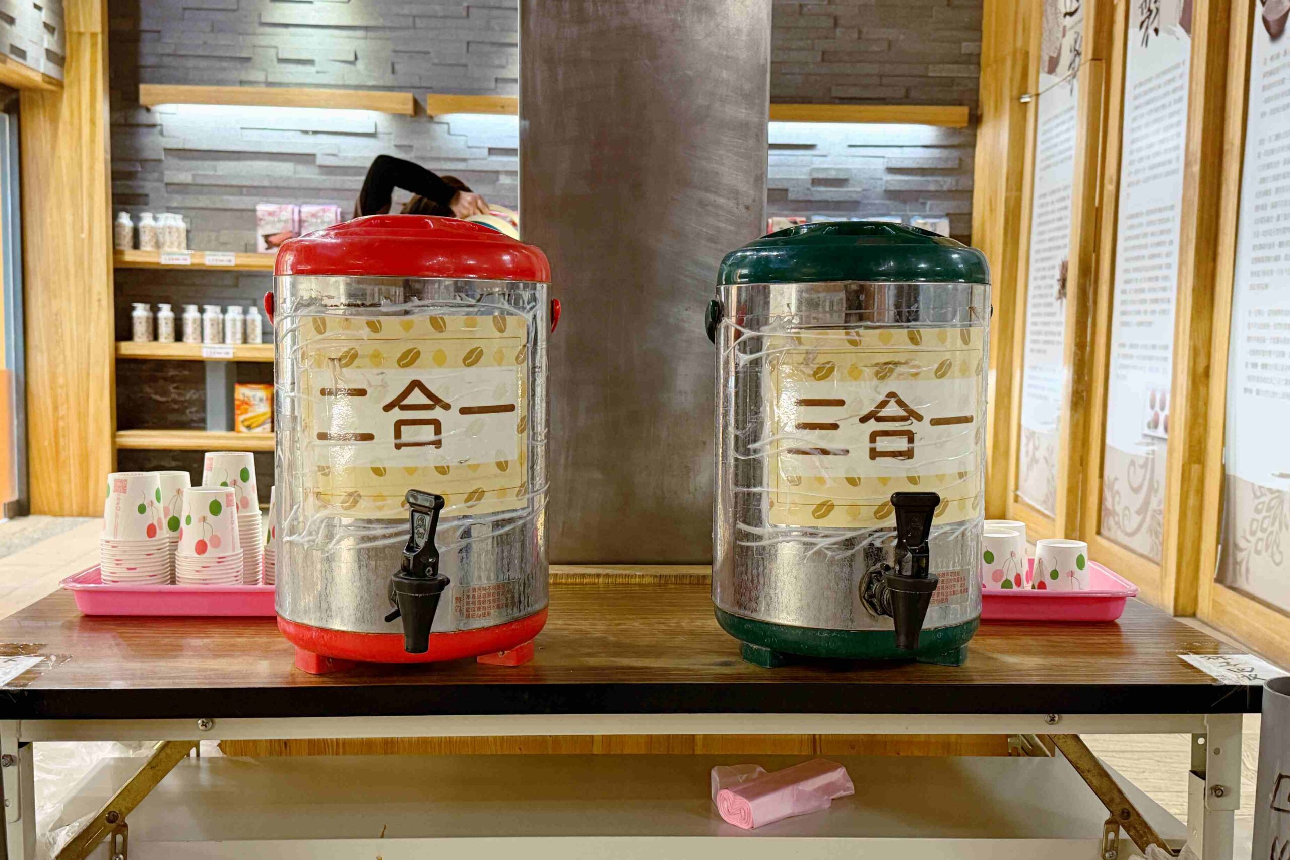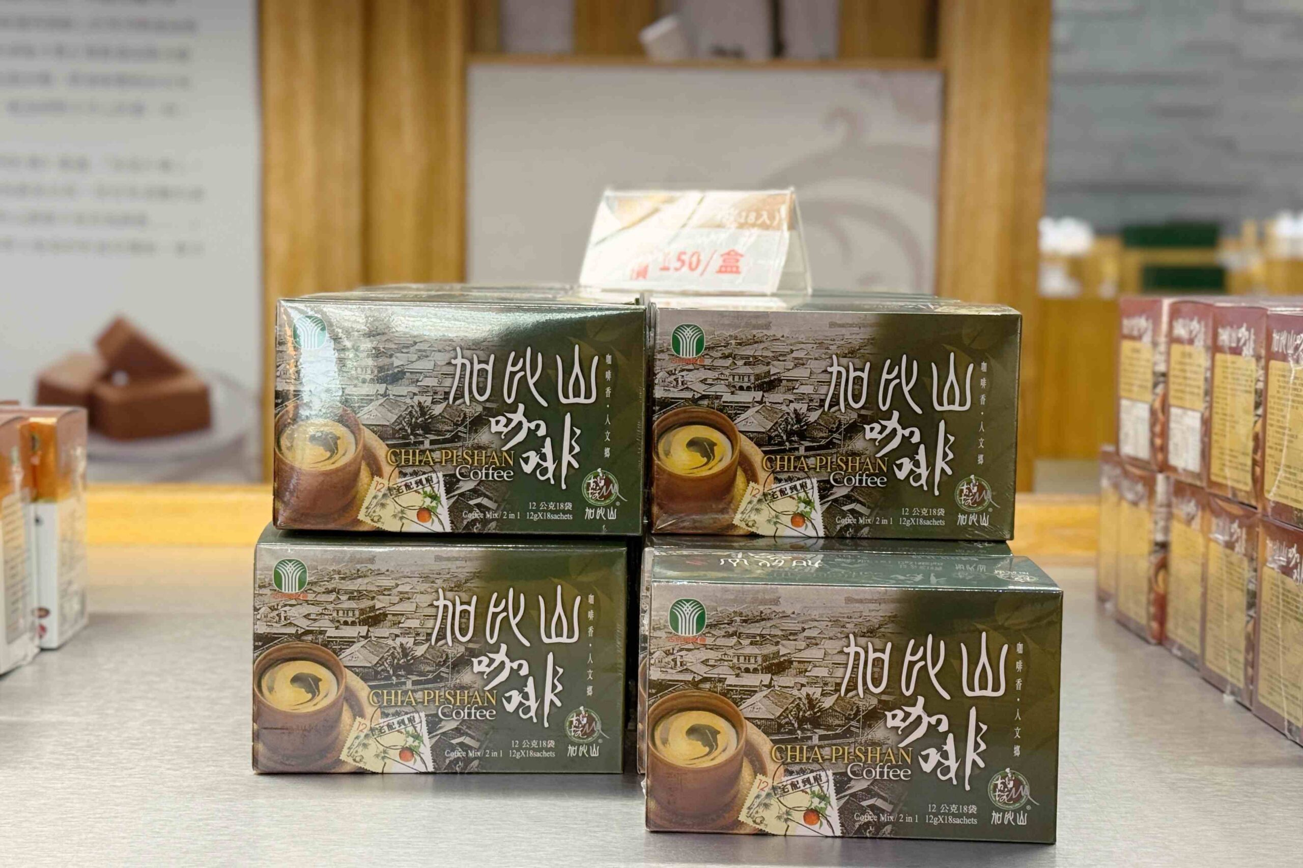農會的工作人員親切又熱情,一踏進店裡,就會招待農會自有品牌「加比山」的二合一、三合一咖啡,還有苦茶油麵線可以試吃。