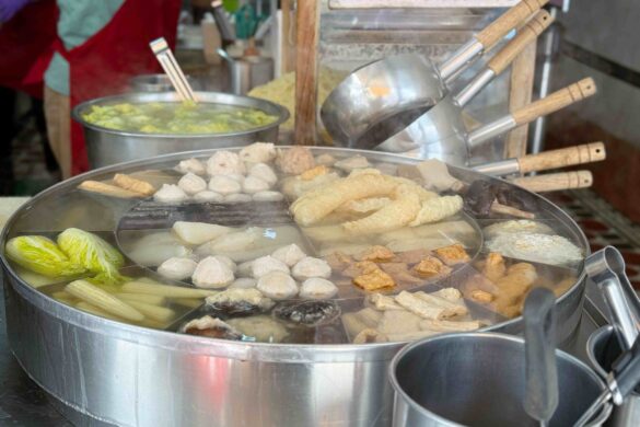 Besides their signature bowl rice cake and egg rice, Old Street Bowl Rice Cake is also famous for its special round hot pot filled with oden—a must-order during winter. With over 90 years of history, the shop draws long lines as soon as it opens, with many customers walking or cycling over, a true testament to its local popularity.