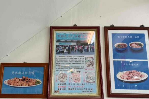 Just a five-minute walk from Taiping Old Street, Squid Xing is easy to spot with its bright green sign proudly declaring “Original Founder.” Right next door is the Douliu Xinxing Temple I mentioned earlier. Squid Xing started as a small stall in front of the temple, but thanks to its locally beloved squid mouth thick soup, it gradually made a name for itself in Douliu and eventually expanded into a large shop with its own parking lot. Inside, the walls are covered with medals and newspaper and magazine clippings, a testament to the restaurant’s popularity.