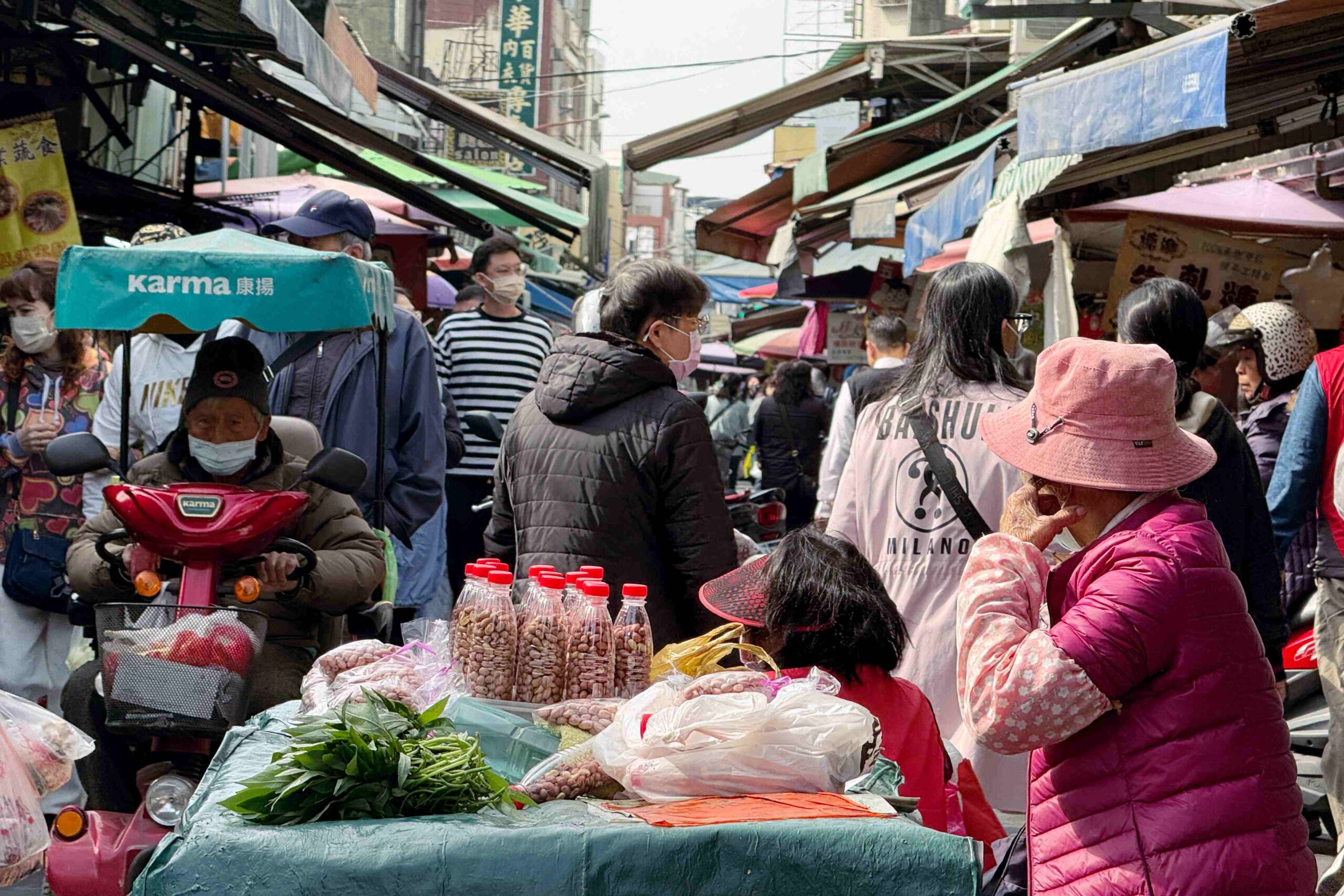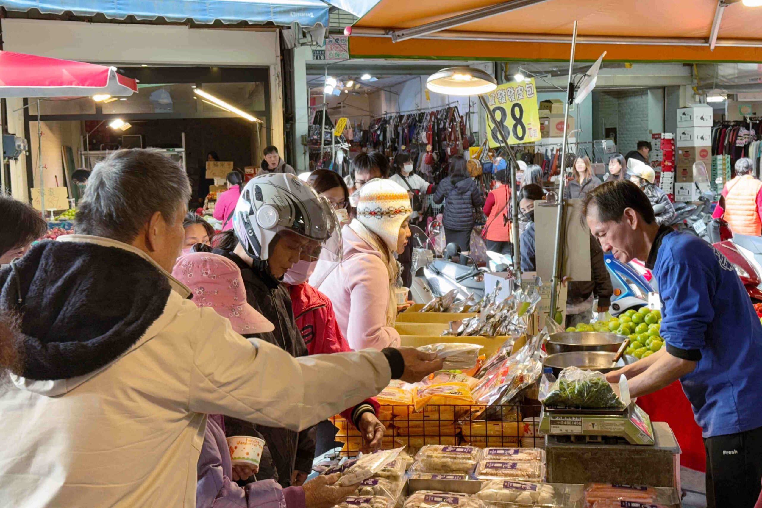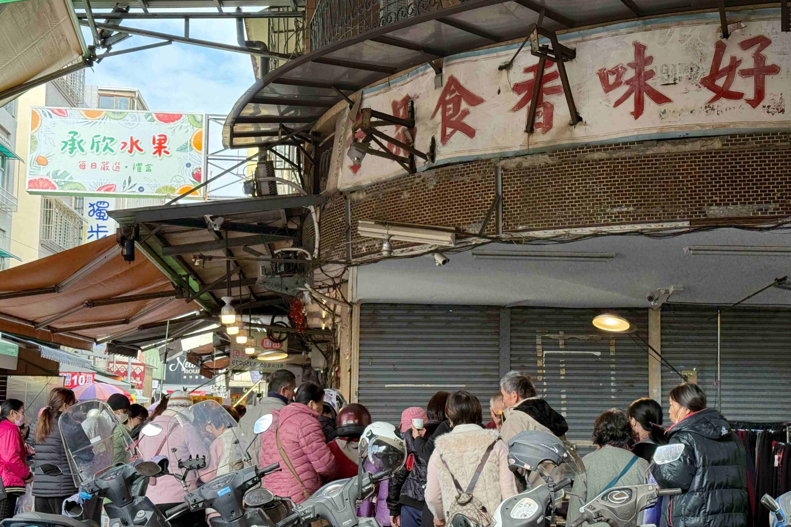 I had a simple breakfast here, but my attention was quickly drawn to a stall under Haoweixiang Foods selling ready-to-cook packs and hot pot ingredients. This is arguably the busiest spot in the market. The owner generously offered samples, and customers gathered around in a circle, creating a warm, lively scene—a kind of friendliness that’s truly unique to Taiwanese markets.